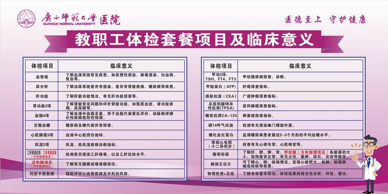 今年,在经费有限的情况下,校医院通过优化采购等合理安排,积极为教职工谋福利,新增了甲状腺超声检查、乙肝表面抗体检测、淀粉酶检测,进一步完善体检项目,持续做好教职工健康体检这项暖心工程。