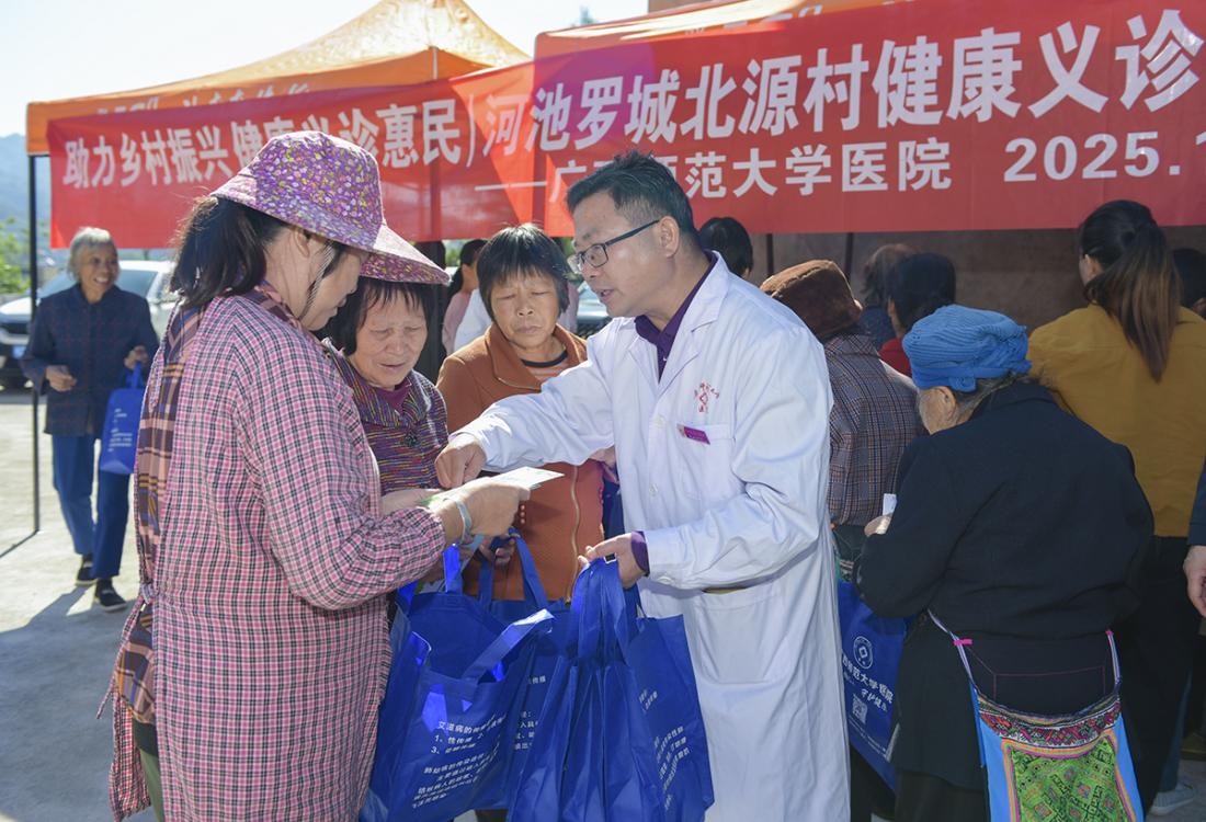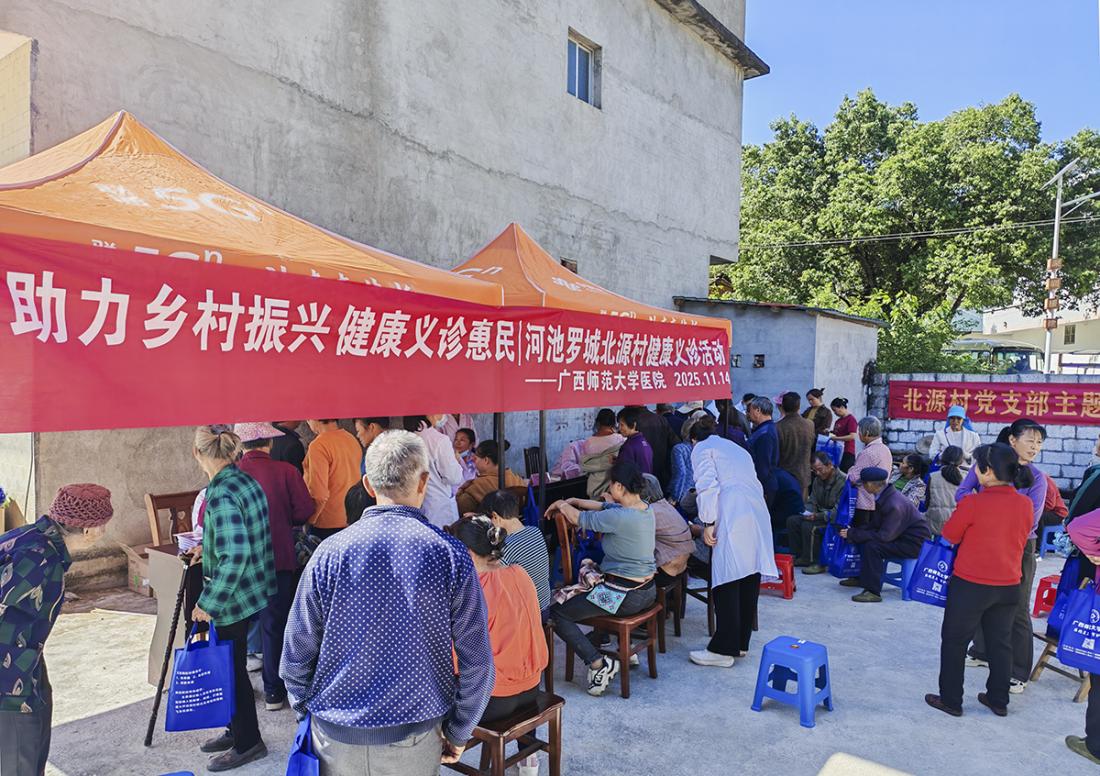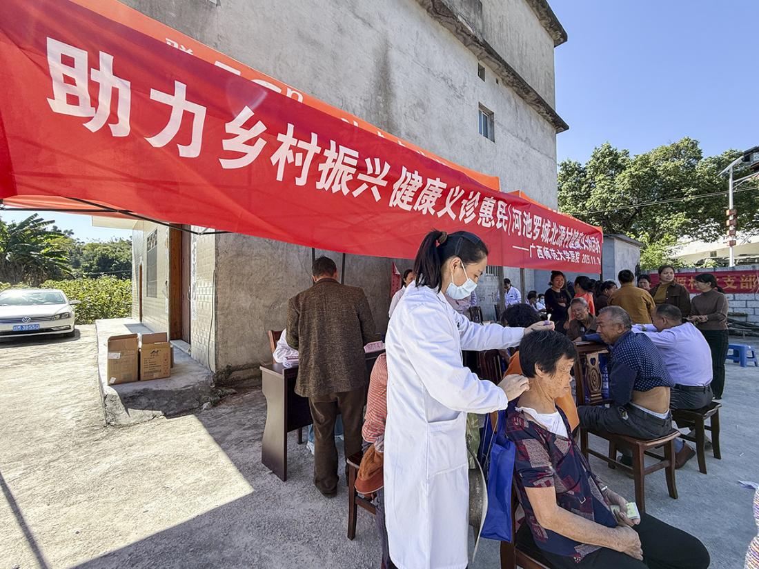 11月14日,由校党委常委、副校长林国庆带队,我校各后盾单位赴河池市罗城县北源村联合开展乡村振兴帮扶活动。校医院作为后盾单位之一,发挥专业优势,切实服务乡村群众健康需求,组织了15名业务骨干开展义诊活动,得到了村民们的热烈响应。