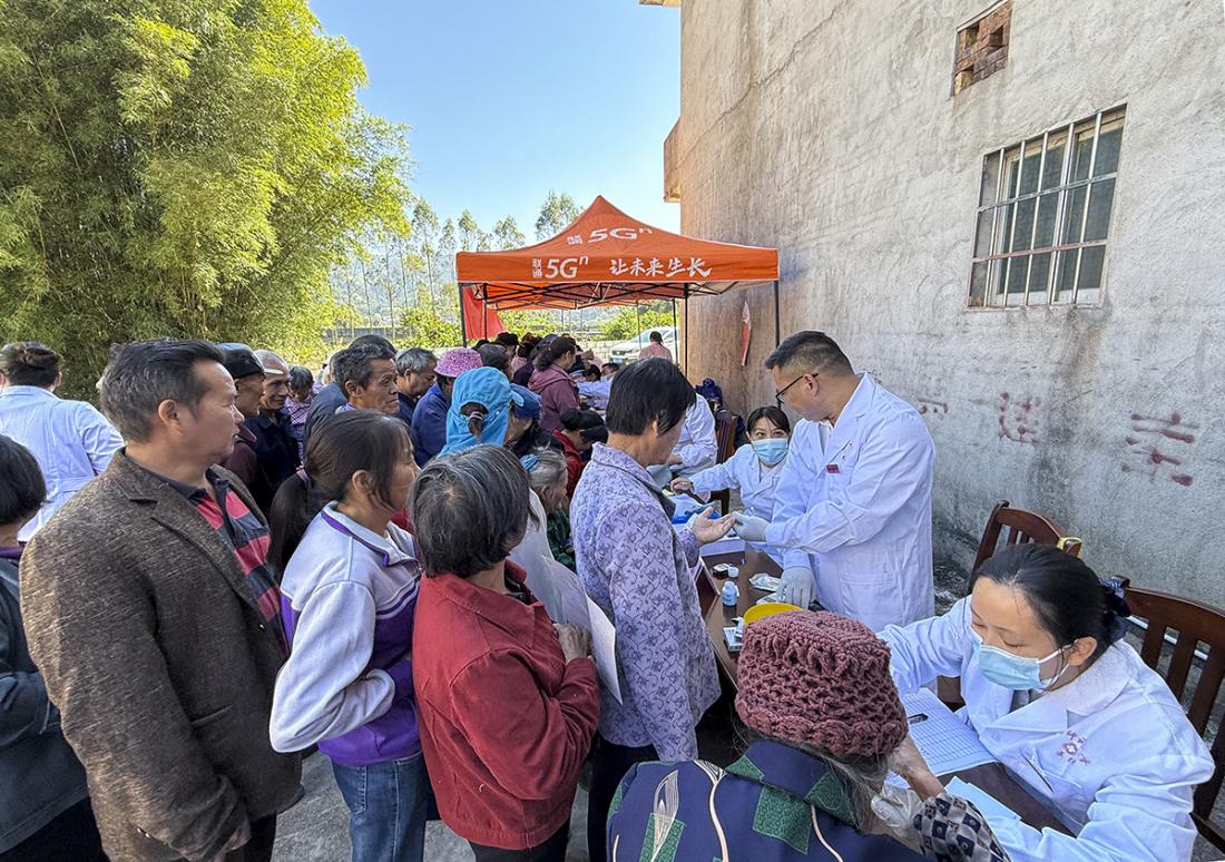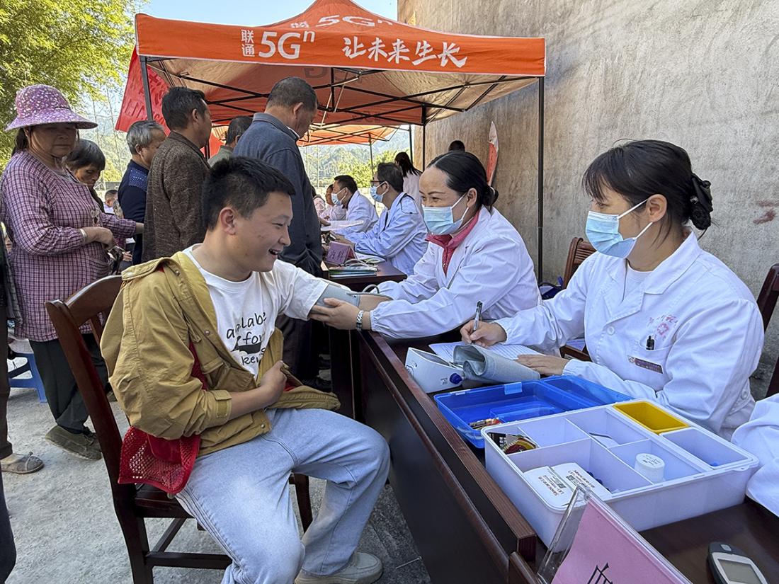 值得一提的是,北源村现任驻村第一书记是校医院副院长廖海缘,这一特殊纽带让此次义诊更贴合村民实际需求。活动现场,村民们参与热情高涨,早早在义诊现场等候,义诊持续近3小时,累计服务两百余位村民。校医院精心设置内、外、中医、口腔、妇科等多个诊疗科目,同步提供血糖、血压、尿酸检测及心电图检查等基础项目。义诊团队还为村民答疑解惑,普及健康养生知识,发放治疗药品和健康宣传资料。其中,中医科的现场针刺治疗凭借便捷有效的诊疗效果广受欢迎,不少村民专门咨询颈肩腰腿痛等常见病症,医师们耐心辨证施治,赢得一致好评。