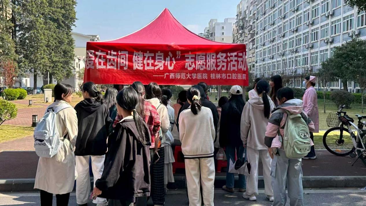 当天,校医院还与桂林市口腔医院联合举办“爱在齿间 健在身心”志愿服务活动。来自口腔医院的志愿者们通过设立咨询台、开展免费口腔检查等方式,向在校师生普及口腔保健知识,解答常见口腔问题,帮助大家树立“早预防、早发现、早治疗”的口腔健康观念。