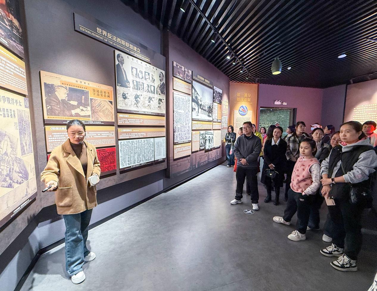 飞虎队桂林遗址公园坐落于秧塘机场旧址,作为中美军民并肩抗战的重要见证地,保存着山洞指挥所、飞机掩体等珍贵文物,永久陈列的C-47运输机静静矗立,诉说着烽火岁月的峥嵘往事 。在讲解员引导下,职工们依次参观抗战纪念馆、英雄纪念碑、浮雕墙等核心区域,仔细端详飞虎队军服、勋章、作战地图等历史文物,认真聆听“驼峰航线运送70多万吨抗战物资”“中美军民携手救护九百余名飞虎队飞行员”等感人故事,深切感悟革命先辈为民族解放挺身而出的家国情怀与无畏担当,对爱国主义的时代内涵有了更深刻的理解。