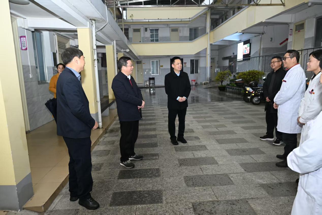 在新春佳节来临之际,校党委书记贺祖斌、党委副书记黄文韬、副校长林国庆率党政办、宣传部、党委教师工作部、校工会等部门负责人一行,专程来到校医院,向节日期间坚守岗位的校医院一线医护人员致以诚挚问候与新春祝福。校医院负责人陪同慰问。