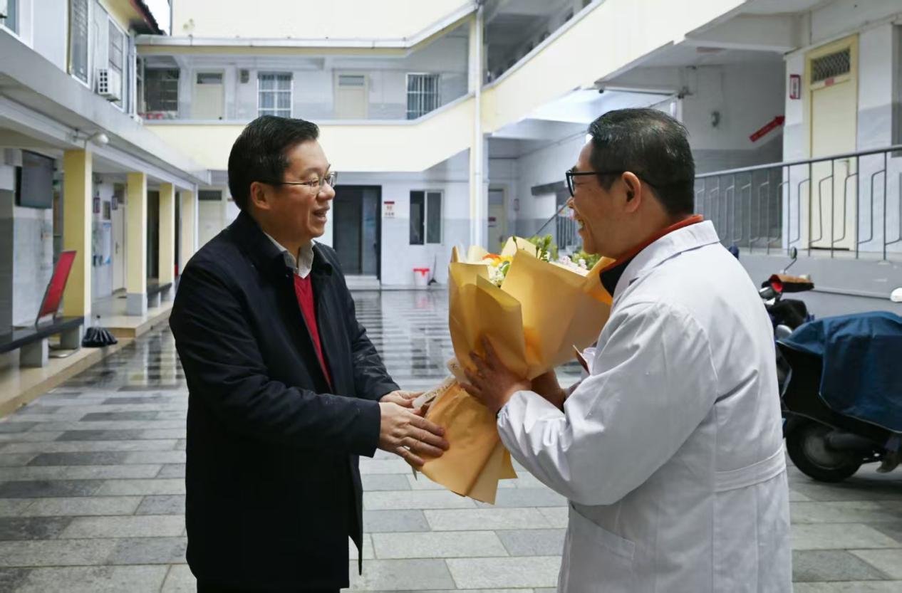 校党委书记贺祖斌向校医院值班医生送上新春祝福