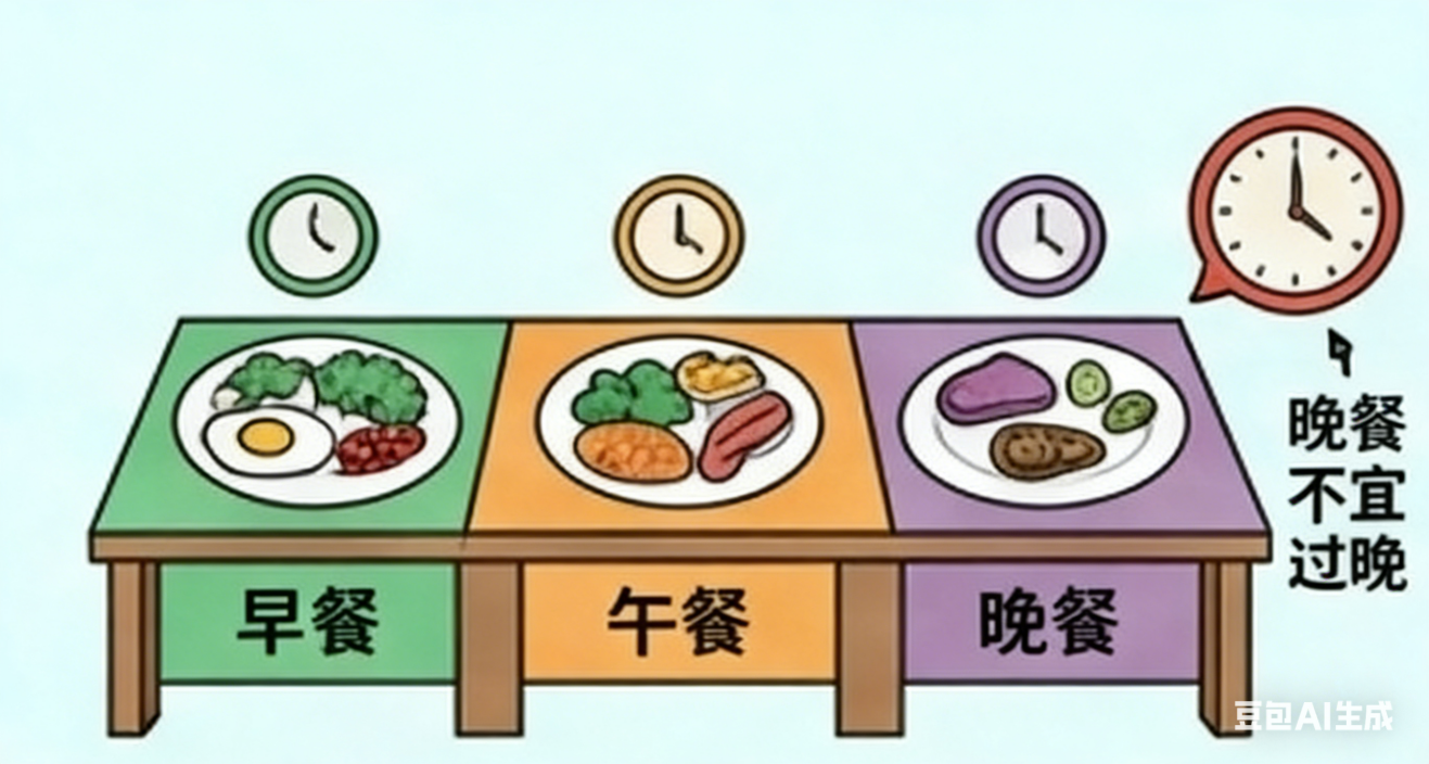 三餐定时定量。
