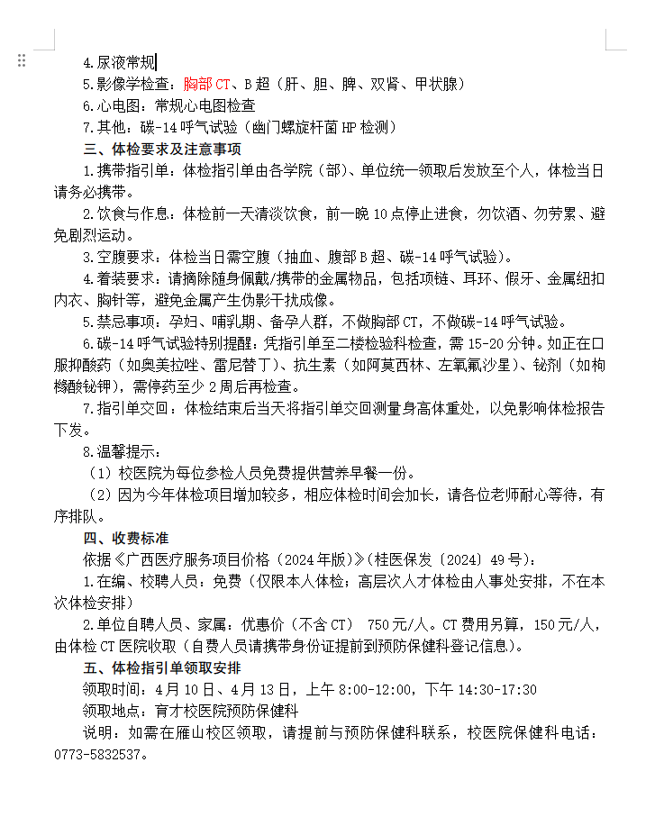 未尽事宜请联系校医院预防保健科,联系电话:0773-5832537。